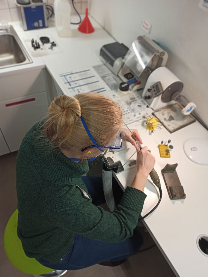 Hörakustikerin Luisa Marie Triebert: Definitiv Aufgeschlossenheit, denn man erfährt viel von den Menschen und muss auch viel aufnehmen, um das Hörgerät wirklich exakt abzustimmen. Eine der wichtigsten Voraussetzungen für mich ist, dass man mit Menschen arbeiten möchte. Zusätzlich sollte man handwerklich und technisch oder physikalisch interessiert sein. Der Beruf wird immer digitaler, trotzdem bleiben die handwerklichen Grundlagen, etwa Fräsen oder Abformungen von den Ohren nehmen. Das macht Spaß – und man kann es lernen. Ich kann allen interessierten Schülern nur raten, keine Scheu vor der Technik zu haben. Indem man mit Spaß bei der Arbeit ist und sich weiterentwickeln möchte, kommt das Wissen von alleine – auch, wenn man vorher vielleicht kein Genie in Mathe oder Physik war.